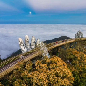 Finally, after enjoying a cable car ride up to the top of the mountain and taking in the panoramic views of the surrounding area. You will arrive at the Ba Na Hills mountain peak, a famous resort for its stunning scenery and attractions.