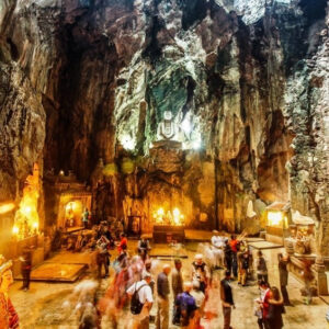 Later, you move on to Marble Mountain by going up on an elevator. There are about a dozen spots that you should visit there, such as Linh Ung Pagoda, Xa Loi Tower, Tang Chon Cave, Hades Cave, Huyen Khong Cave, Tam Thai Pagoda, Heaven Gate, etc.