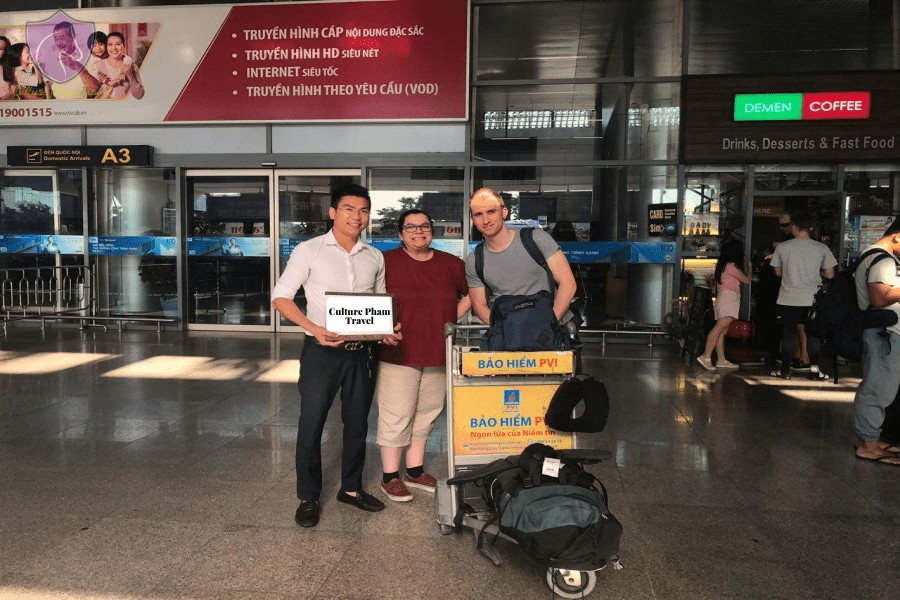 According to the provided flight details, our English-speaking driver will pick you up at the arrival gate of Danang International Airport. Let’s notice to the one who holds a welcome board with your full names! This one is our hospitable driver.