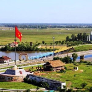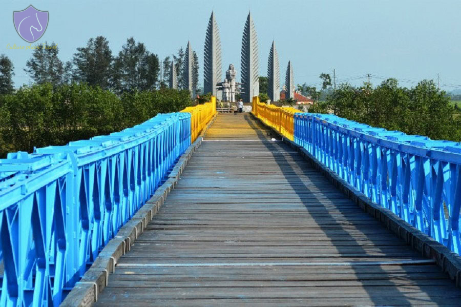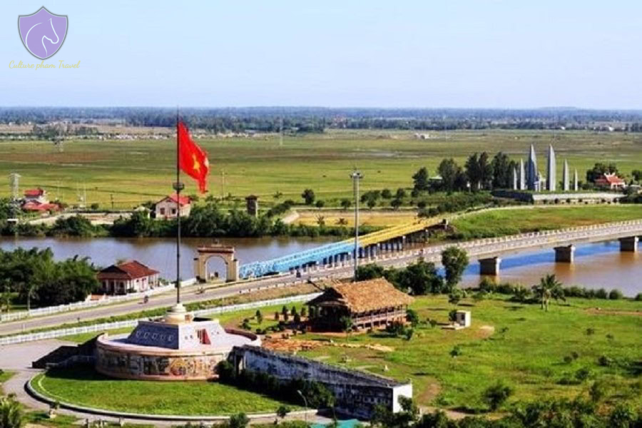 Hien Luong Bridge spans the banks of the Ben Hai River—a historic witness to the Vietnam War. American bombs in 1967 damaged the original Hien Luong Bridge, and it has just been rebuilt. This bridge was half red and yellow at the time, serving as a physical and ideological boundary that separated North and South of Vietnam