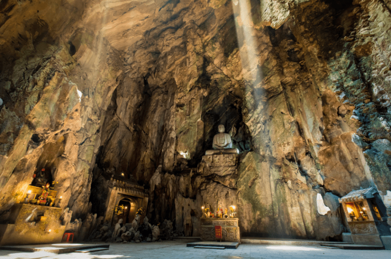 Marble Mountains in Da Nang are a natural wonder, a group of limestone hills that house hidden caves, ancient Buddha statues, and sacred pagodas. You can explore these mystical caves or climb to the top for panoramic views of Da Nang and Hoi An. Nearby, the Non-Nuoc stone-carving village showcases the craftsmanship of local artisans who create stunning marble sculptures.