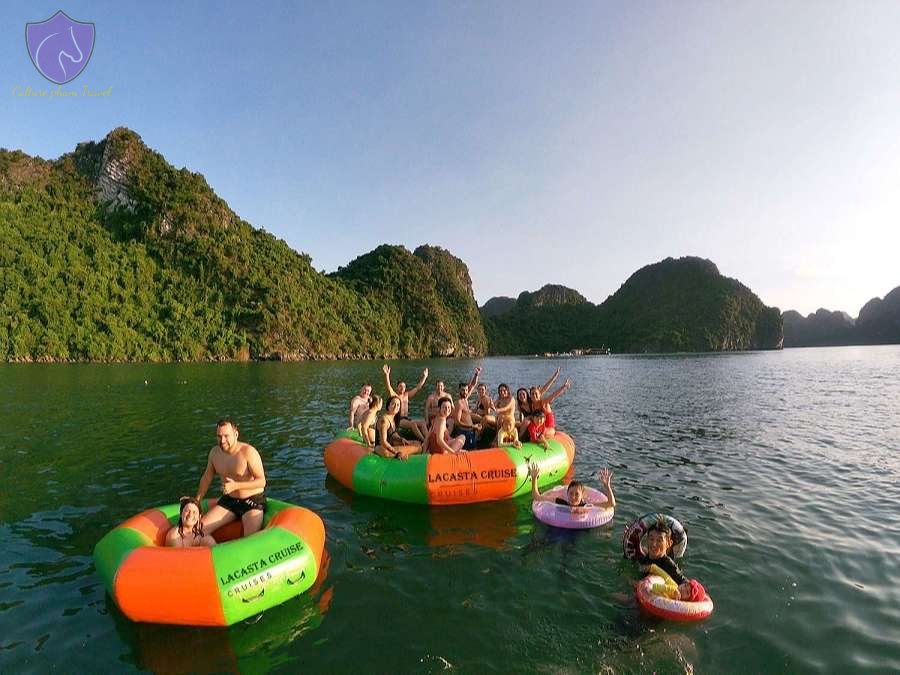 You can also join some activities such as kayaking, sightseeing on the bamboo boat, and swimming. These are interesting activities to discover the truest beauty of the stunning limestone structure and the blue sky of Lan Ha Bay.)