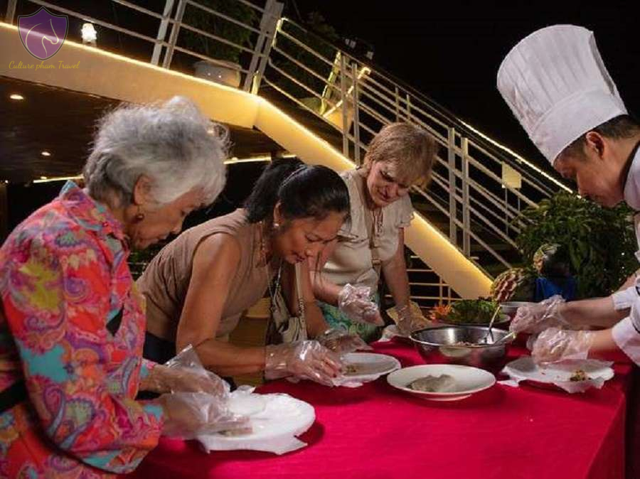 18:00: You can join a cooking demonstration. The cruise chef will guide you on how to make some simple signature Vietnamese dishes.