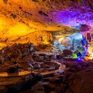 1:00 pm: After enjoying lunch, the tour guide will take you to visit Sung Sot cave (Surprising cave) at Bo Hon Island. It is the largest and most stunning cave in Ha Long Bay.