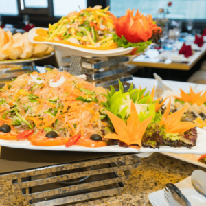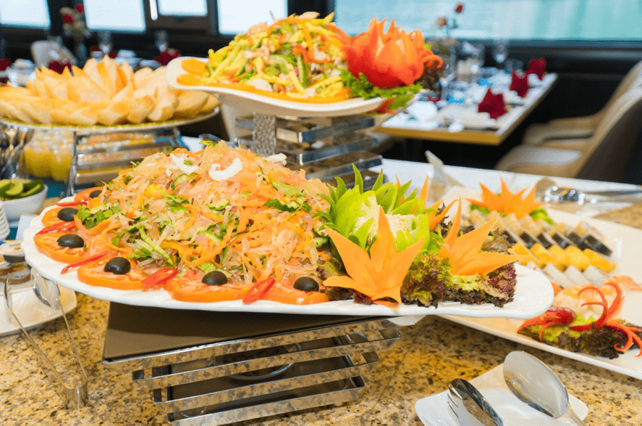 12:00 pm: You will enjoy a deluxe buffet lunch served by the cruise staff. From the famous fresh seafood dishes of Quang Ninh province as well as traditional Vietnamese dishes.