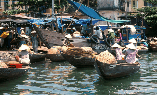 Keep stepping around, you’ll reach Bach Dang Street, where you’ll find full of fruit and vegetables on display in wooden baskets. Actually, they are available for the whole day.
