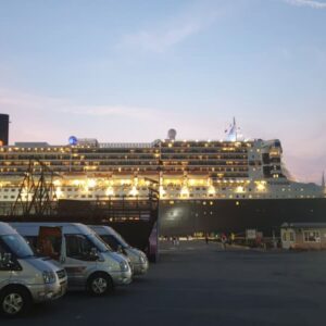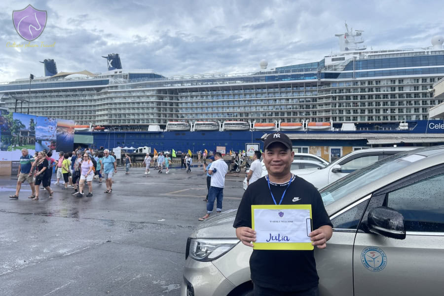 From 7 am to 8:30 am, our tour guide and driver will come to pick you up at the Chan May Port Gate, from your cruise ship, which is about 600 meters away. On the way out, you will see our tour guide with your name on the Welcome Board. Get in the nice minivan; we start the Chan May Port to Hoi An Tour.
