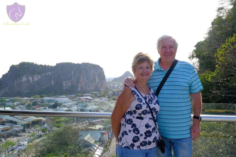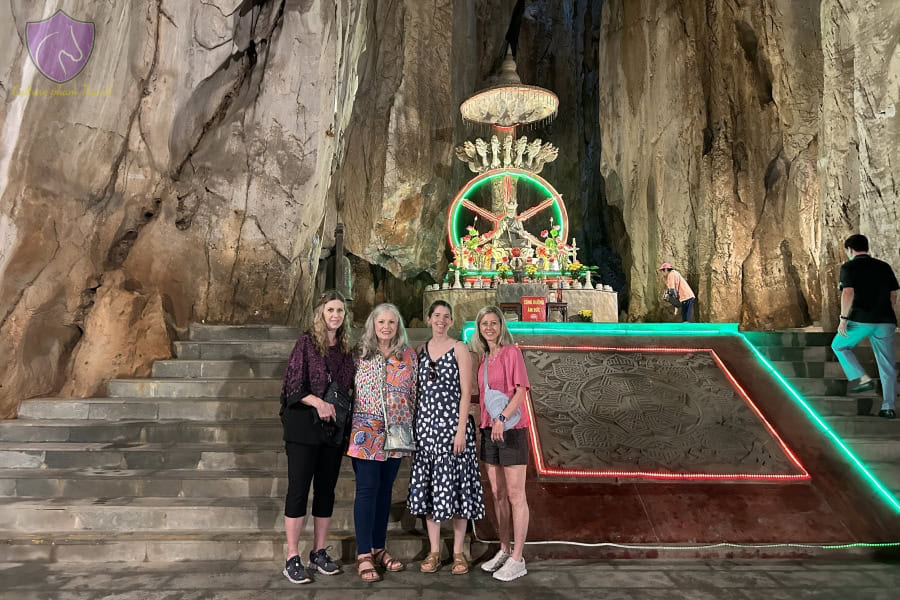Around 10:45 am, we get to the Marble Mountains. It is a beautiful cluster of 5 limestone and marble mountains in the middle of Da Nang. The specialty of this mountain is that it has five mountains that have different colors, representing 5 basic elements as well as the 5 fingers of Buddha.