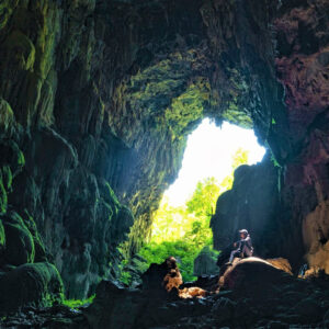 The large Elephant cave entrance is 60 m in height and 300 m in length, with green vegetation inside the cave. Our guide will safely explore the cave with you as well as provide information on cave formations and historical stories about Elephant Cave.