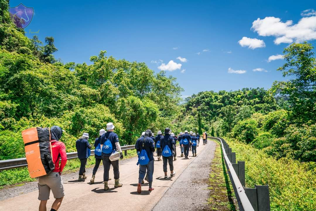 After lunch and rest, swimming at Ma Da Lake, the itinerary will continue with a trekking experience from Ma Da Lake to Tra Ang Valley. You will experience swimming in a dark cave with headlights and safety equipment. Once you swim to the end of the cave, everyone will turn off their flashlights to enjoy the silence of the dark in the vast water cave.