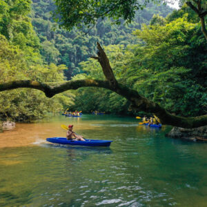 Firstly, you will explore the Phong Nha – Ke Bang primeval forest. After that, you will take a short walk to explore the impressive Elephant Cave. Next, you walk through Ma Da Valley to reach Ma Da Lake with beautiful blue water, known as “Tuyet Tinh Coc” of Phong Nha Ke Bang National Park.