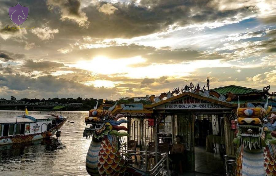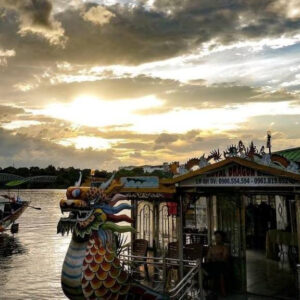 Walking to the Toa Kham boat station to take a dragon boat on the Perfume River to admire the beautiful sunset. Our local guide will explain to you why we call it the Perfume River and how important it is in the Feng Shui of the Hue Citadel.