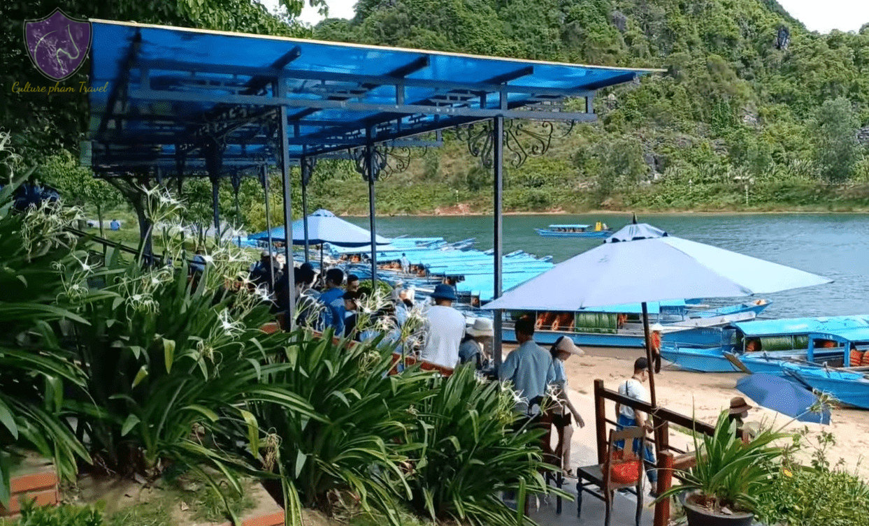 On the boat, you will enjoy rustic scenes such as water buffalo, limestone peaks, and a church steeple to the mouth of the cave. After reaching the cave entrance, the engine is turned off and the boats are rowed by hand into the cave for you to admire the beauty of Phong Nha cave.