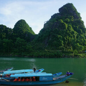 At 1:00 pm: We continue the journey of Hue to Phong Nha cave tour full day by taking a motor boat along the Son River to get to Phong Nha Cave. It is a great experience for you to see the beautiful scenery along both sides of the river.