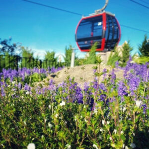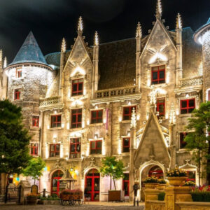 From above, it looks like the two giant hands of GOD rising up from the mountain cliffs. The Golden Bridge connects the station to the French Village and Le Jardin D’Amour’s flower garden.